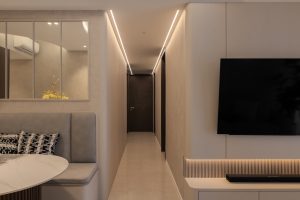 The final result is a modern contemporary home enhanced with refined luxe touches. Through thoughtful ceiling design and feature elements, the condominium was transformed into a sophisticated yet comfortable living space. The overall design reflects a balance of elegance and practicality—perfectly suited to the family’s lifestyle and long-term living needs.