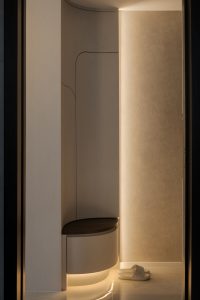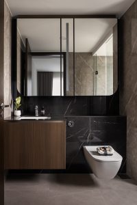 The bathrooms follow the same modern contemporary luxe direction, featuring clean finishes and well-considered layouts. The design balances aesthetics with functionality, ensuring ease of maintenance while offering a refined bathing experience.