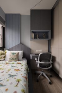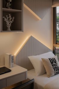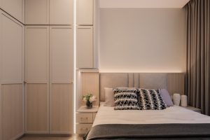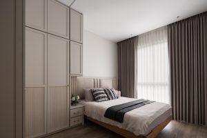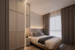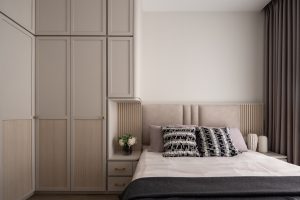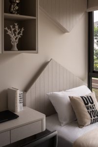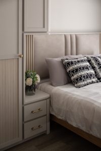 The bedrooms were kept calm and minimal, focusing on comfort and functionality. The design approach prioritised a restful ambience, with subtle detailing that complements the overall theme while ensuring the rooms remain practical for everyday living.
